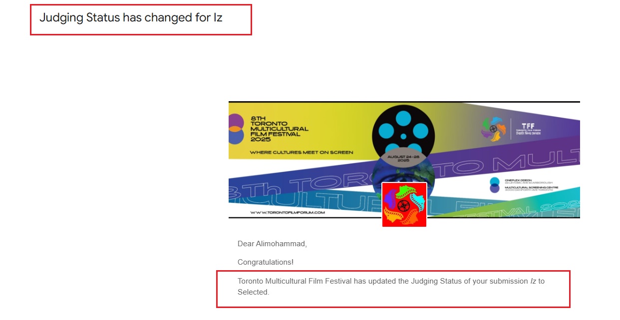 IRAN FILM PORT (An Iranian Films Agency and Distribution) announces formally and proudly that the short film named "IZ", directed and produced by "Navid Ghahremani" has been officially selected at "Toronto Multicultural Film Festival" in Canada 2025. This film is being distributed by "IRAN FILM PORT" company, under the supervision of "ALIMOHAMMAD EGHBALDAR".