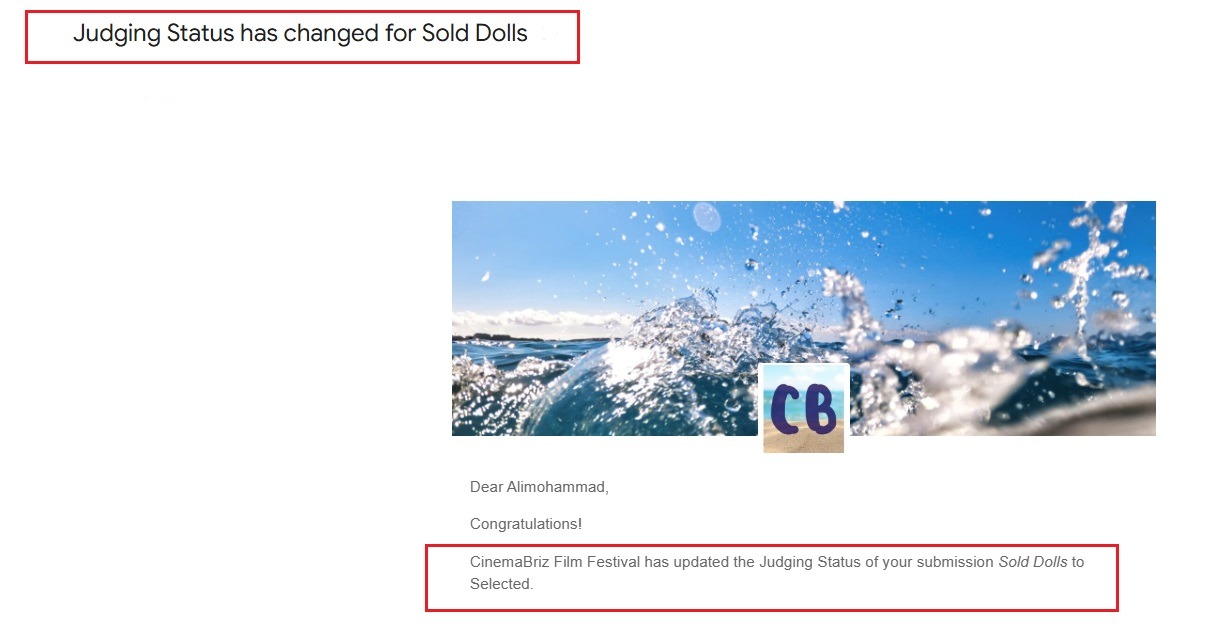 IRAN FILM PORT (An Iranian Films Agency and Distribution) announces formally and proudly that the short film named "Sold Dolls", directed and produced by "Arastoo Moradi" has been officially selected at "CinemaBriz Film Festival" in Spain 2025. This film is being distributed by "IRAN FILM PORT" company, under the supervision of "ALIMOHAMMAD EGHBALDAR".