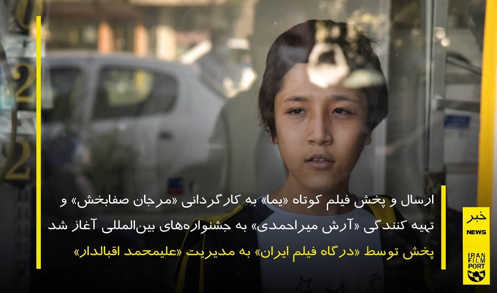 به گزارش «درگاه فیلم ایران» ارسال و پخش فیلم کوتاه «یما» به کارگردانی «مرجان صفابخش» و تهیه کنندگی «آرش میراحمدی» به جشنوارههای بینالمللی، توسط آژانس بین المللی پخش و ارسال فیلم و فیلمنامه به فستیوال های بین المللی «درگاه فیلم ایران» به مدیریت «علیمحمد اقبالدار» آغاز شد.