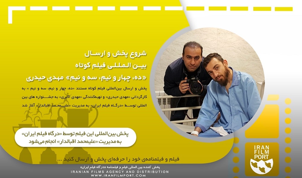 به گزارش «درگاه فیلم ایران» پخش و ارسال بینالمللی فیلم کوتاه مستند «ده، چهار و نیم، سه و نیم» به نویسندگی و کارگردانی «مهدی حیدری» و تهیهکنندگی «مهدی اکبری» به جشــــنوارههای بینالمللی توسط «درگاه فیلم ایران» به مدیریت «علیمحمد اقبالدار» آغاز شد.