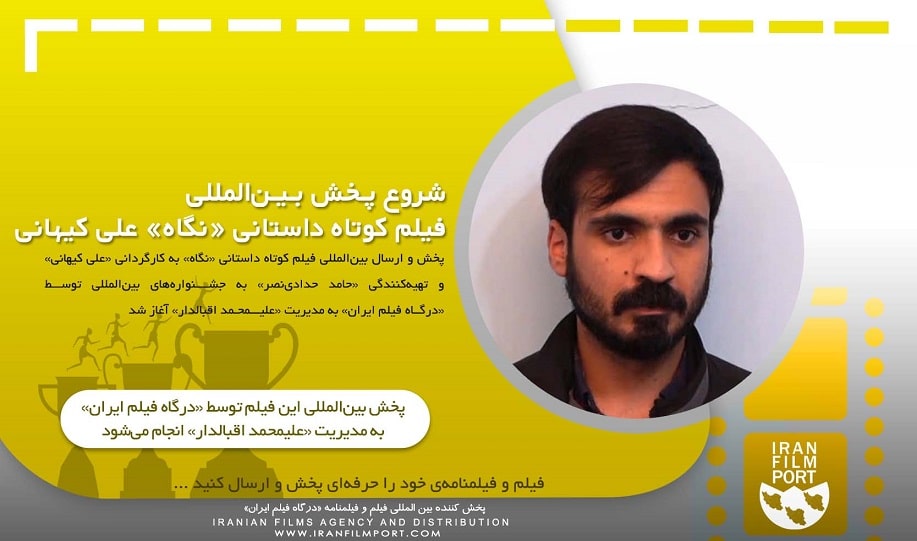 به گزارش «درگاه فیلم ایران» پخش و ارسال بینالمللی فیلم کوتاه داستانی «نگاه» به کارگردانی «علی کیهانی» و تهیهکنندگی «حامد حدادینصر» به جشــــنوارههای بینالمللی توسط «درگاه فیلم ایران» به مدیریت «علیمحمد اقبالدار» آغاز شد.
