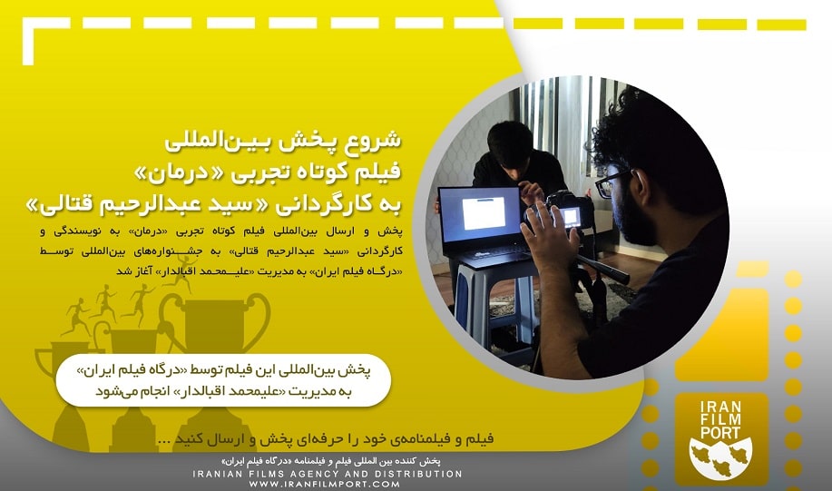 به گزارش «درگاه فیلم ایران» پخش و ارسال بینالمللی فیلم کوتاه تجربی «درمان» به نویسندگی و کارگردانی «سید عبدالرحیم قتالی» به جشــــنوارههای بینالمللی توسط «درگاه فیلم ایران» به مدیریت «علیمحمد اقبالدار» آغاز شد.