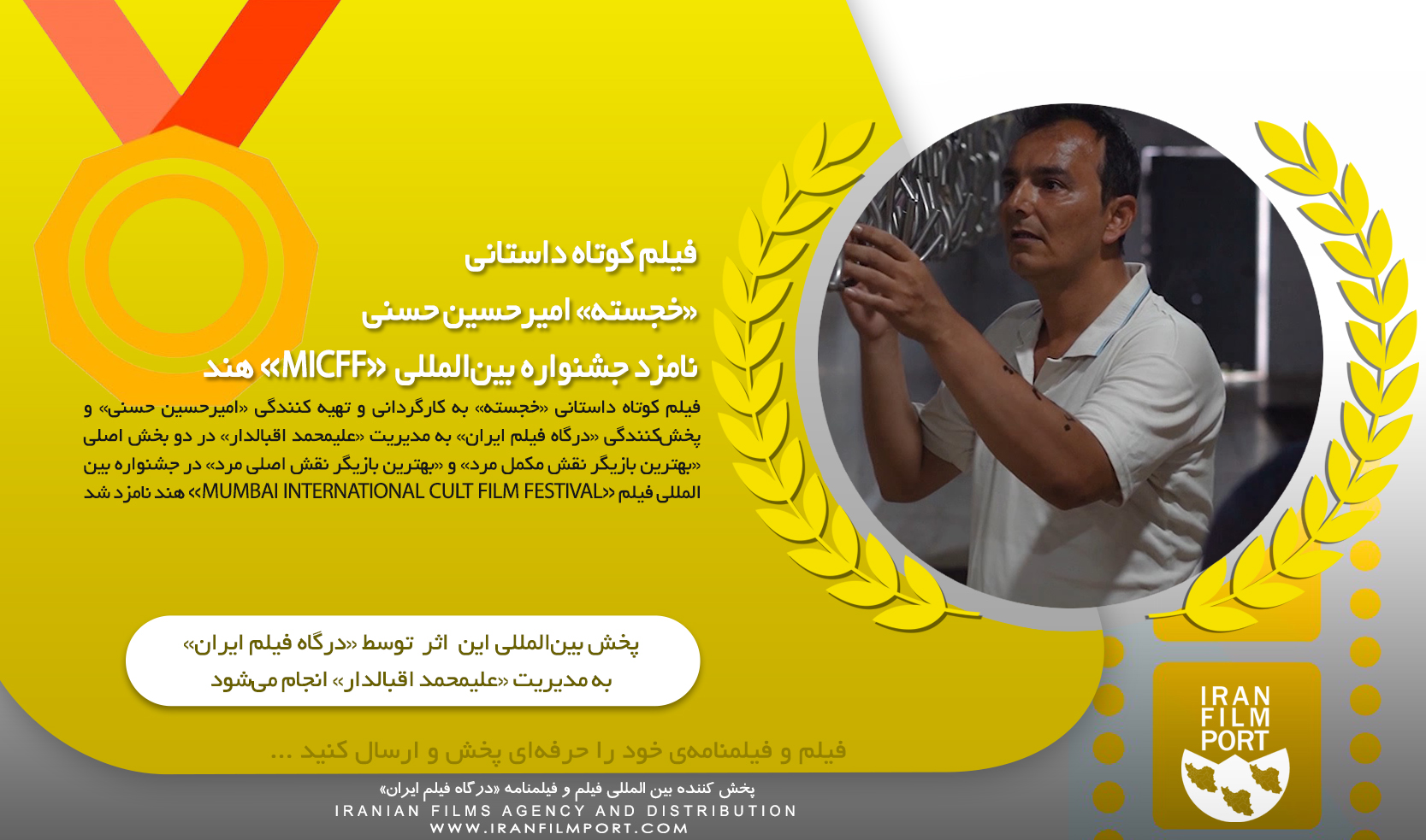 IRAN FILM PORT (An Iranian Films Agency and Distribution) announces formally and proudly that the short film named "Khojasteh" short film, directed & produced by "Amirhossein Hassani" has been nominated in two sections of "Best Actor in a Lead Role" for "Seyed Saeed Shahcheragh" and "Best Actor in a Supporting Role" for "Ali Fathi Damghani" at "MUMBAI INTERNATIONAL CULT FILM FESTIVAL" in India 2023. This short film is being distributed by "IRAN FILM PORT" company, under the supervision of "ALIMOHAMMAD EGHBALDAR".