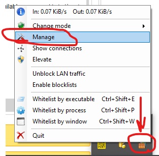 پس از نصب برنامه، از کنار ساعت (پایین سمت راست) روی آیکن برنامه کلیک کرده و روی گزینه Manager بزنید.