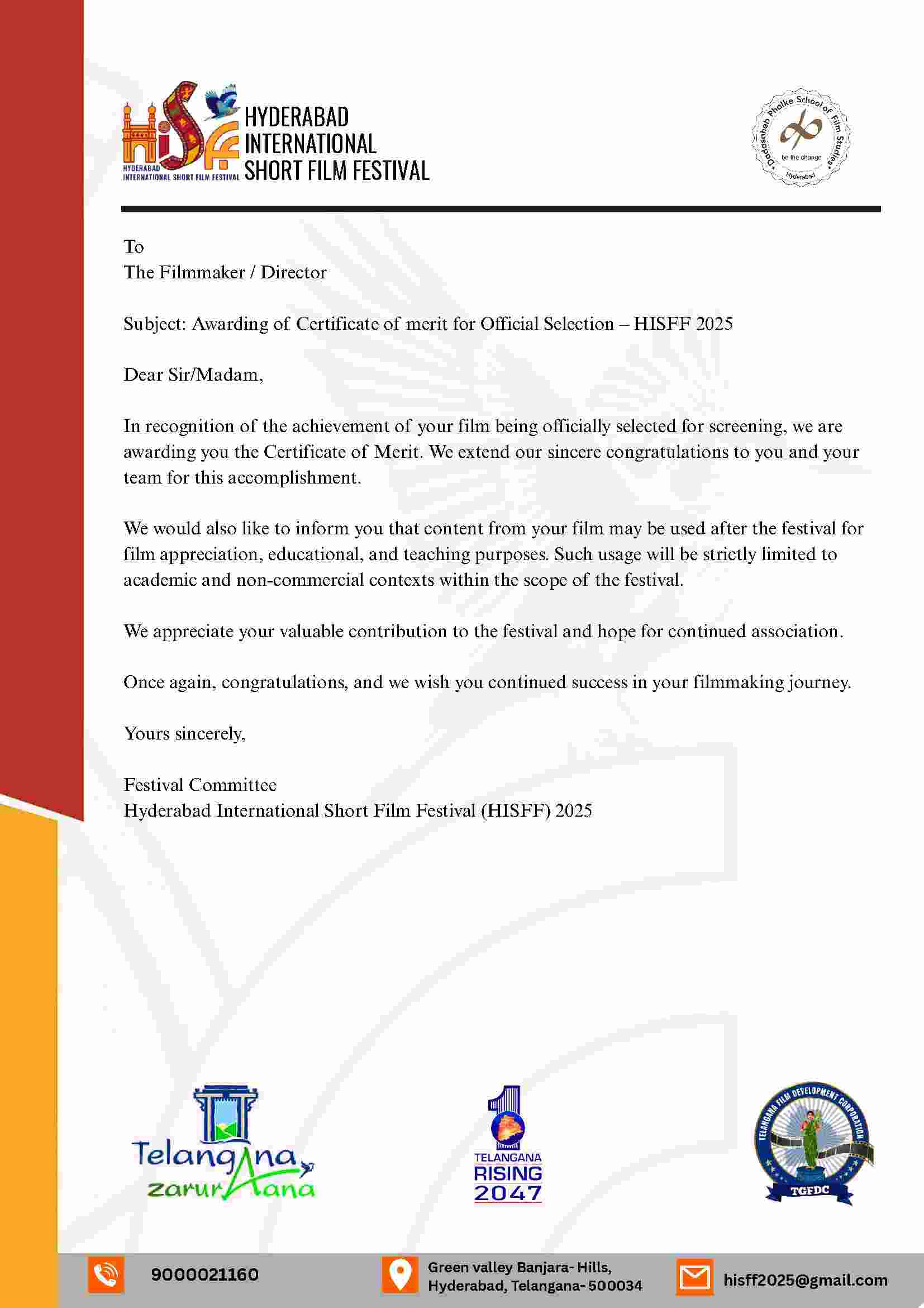 حضور در جشنواره بین المللی «Hyderabad International Short Film Festival» هند - 2025 / لینک خبر