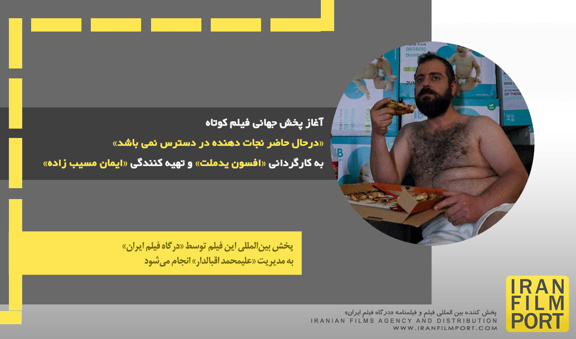IRAN FILM PORT (Iranian Films Agency and Distribution) announces formally and proudly that the distribution of "The Savior Is Not Available At This Moment" short film, directed by "Afsoon Yademellat" and produced by "Iman Mosayeb Zadeh" has been started. This film is being distributed by the IRAN FILM PORT company, under the supervision of "ALIMOHAMMAD EGHBALDAR".
