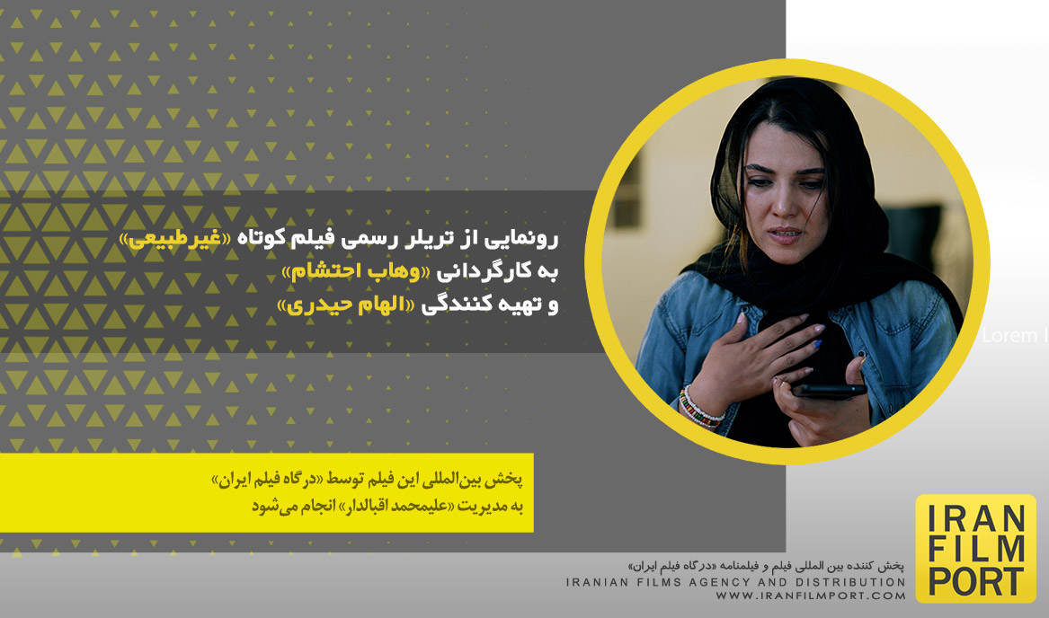 به گزارش «درگاه فیلم ایران» از تریلر فیلم کوتاه داستانی «غیرطبیعی» به کارگردانی «وهاب احتشام» و تهیه کنندگی «الهام حیدری» رونمایی شد. گفتنی است که پخش بین المللی این اثر توسط «درگاه فیلم ایران» به مدیریت «علیمحمد اقبالدار» می باشد.