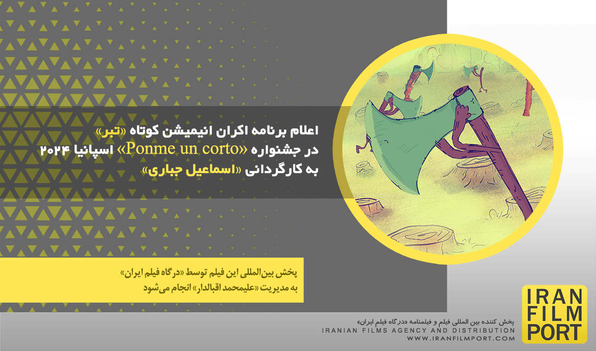 IRAN FILM PORT, an Iranian films agency and distribution company announces proudly that the date of screening "Axe" short animation directed by "Esmail Jabbari" and produced by "Mohammad Vahabi" that has already been selected at «Ponme un corto Film Festival» Spain 2024 is determined. This film is distributing with IRAN FILM PORT company under the supervision of ALIMOHAMMAD EGHBALDAR.
