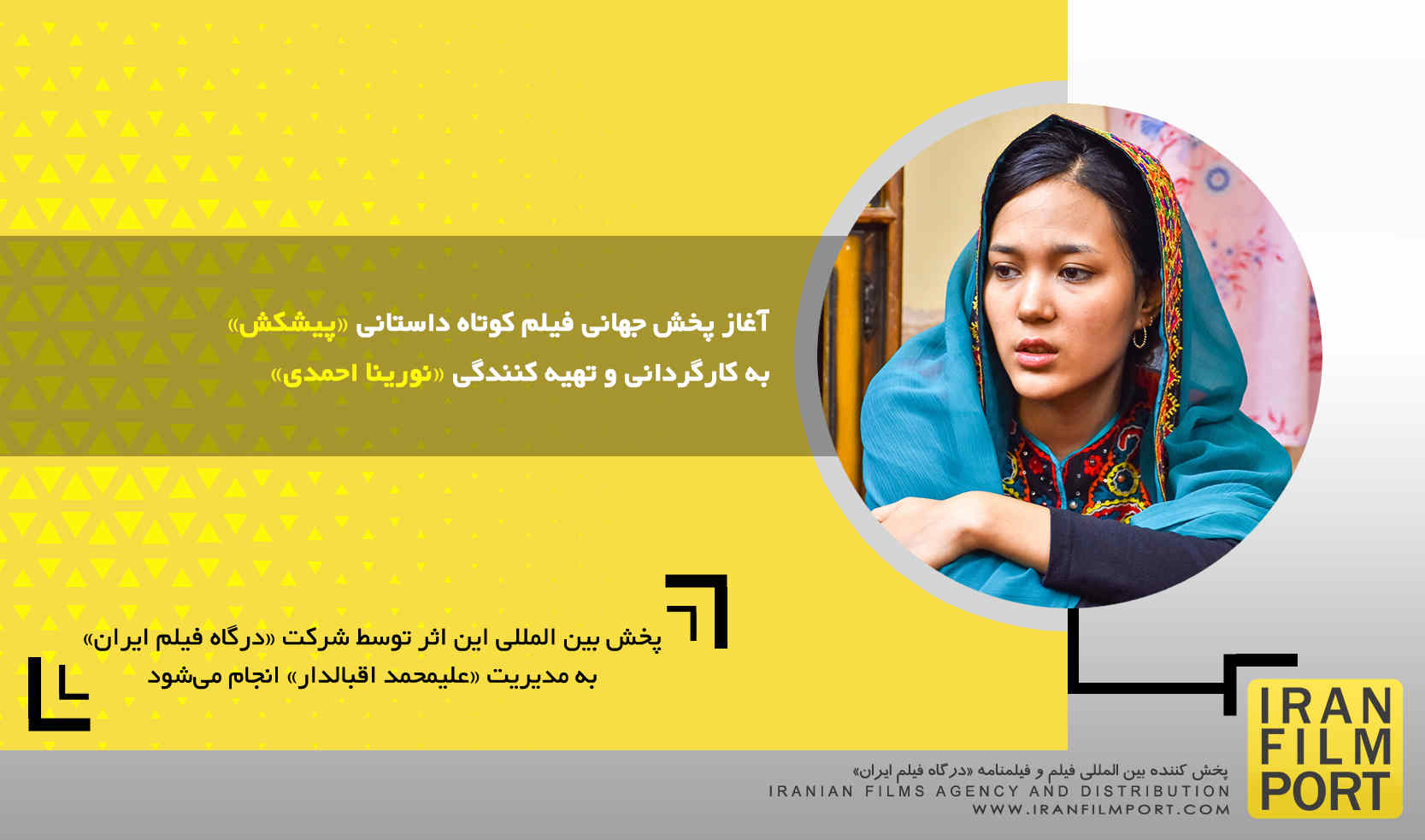به گزارش «درگاه فیلم ایران» پخش جهانی فیلم کوتاه داستانی «پیشکش» به کارگردانی و تهیه کنندگی «نورینا احمدی» به پخش کنندگی «درگاه فیلم ایران» به مدیریت «علیمحمد اقبالدار» آغاز شد.