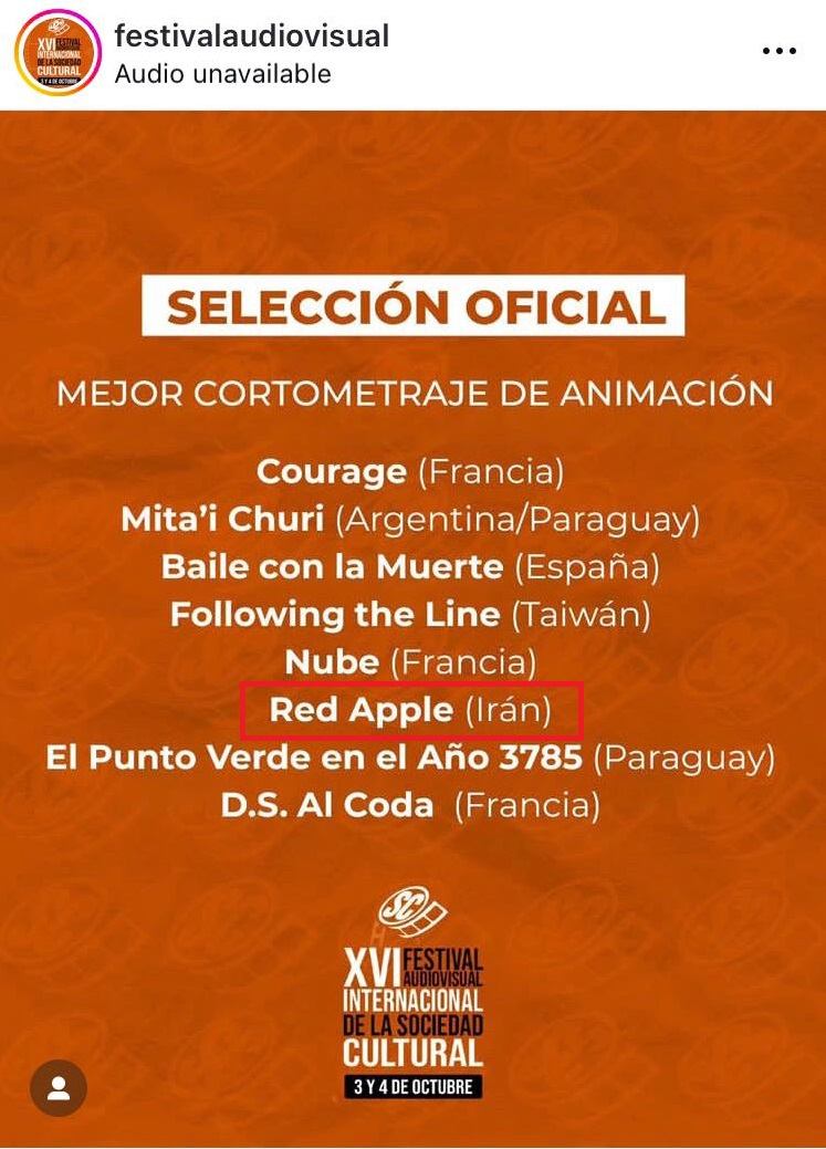 IRAN FILM PORT (An Iranian Films Agency and Distribution) announces formally and proudly that the short animation named "Red Apple", co-directed by "Worya Nick Manesh" and "Maryam Hashem Nezhad" and produced by "Worya Nick Manesh" has been officially selected at "16th Festival International De La Sociedad Cultural" in Paraguay 2025. This film is being distributed by "IRAN FILM PORT" company, under the supervision of "ALIMOHAMMAD EGHBALDAR".
