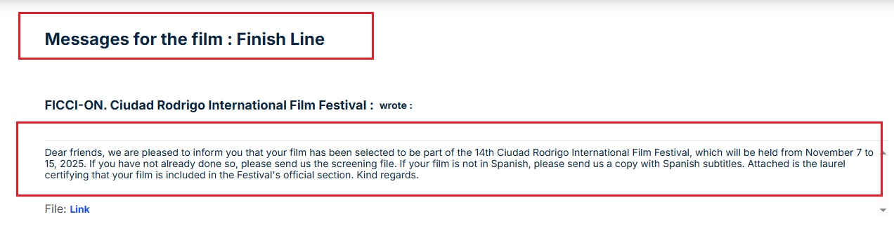 IRAN FILM PORT (An Iranian Films Agency and Distribution) announces formally and proudly that the short film named "Finish line", directed and produced by "Amin Paizi" has been officially selected at "14th Ciudad Rodrigo Internacional Film Festival" in Spain 2025. This film is being distributed by "IRAN FILM PORT" company, under the supervision of "ALIMOHAMMAD EGHBALDAR".