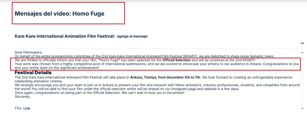 به گزارش «درگاه فیلم ایران» انیمیشن کوتاه «هومو فیوج» به کارگردانی «ماشاالله محمدی» و تهیه کنندگی مشترک «انجمن سینمای جوانان ایران و ماشاالله محمدی» و پخشکنندگی «درگاه فیلم ایران» به مدیریت «علیمحمد اقبالدار»، شانزدهمین حضور خود را در جشنواره بین المللی «Kare Kare International Animation Film Festival» ترکیه تجربه خواهد کرد.