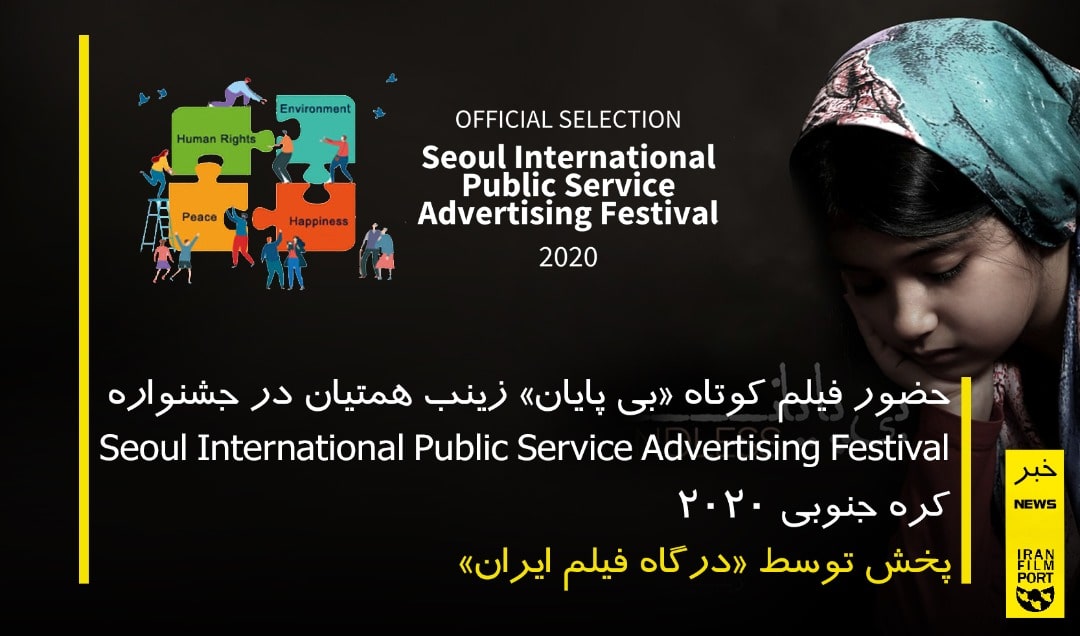 به گزارش «درگاه فیلم ایران» فیلم کوتاه «بی پایان» به کارگردانی زینب همتیان به جشنواره Seoul International Public Service Advertising Festival کره جنوبی راه پیدا کرد.