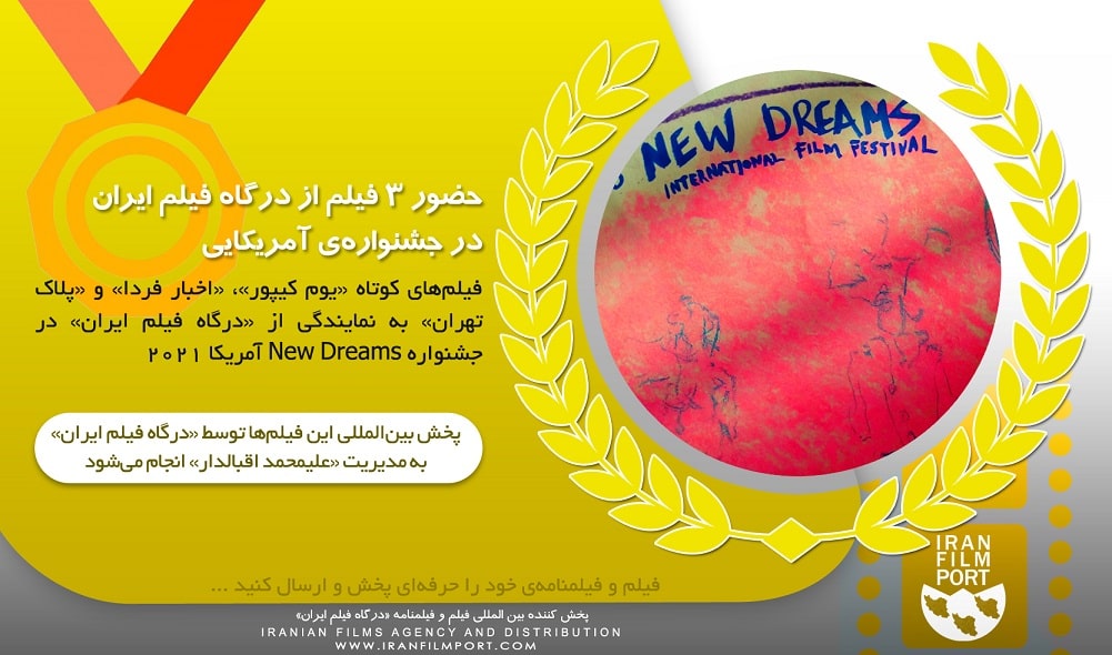 به گزارش «درگاه فیلم ایران» فیلم های کوتاه داستانی «یوم کیپور» امیرمحمد مهاجری، «خبر فردا» امید خیری و «پلاک تهران» علیرضا محزون به پخش کنندگی «درگاه فیلم ایران» به مدیریت «علیمحمد اقبالدار» به جشنواره بین المللی فیلم New Dreams آمریکا 2021 که در ماه سپتامبر برگزار خواهد شد، راه پیدا کرده اند.