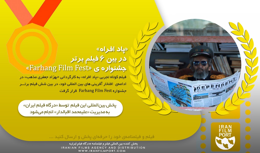 به گزارش «درگاه فیلم ایران» فیلم کوتاه تجربی «پاد افراه» به کارگردانی «بهزاد جعفری مذهب» و پخش کنندگی «درگاه فیلم ایران» به مدیریت «علیمحمد اقبالدار»، در بین 6  فیلم برتر جشنواره ی «farhangfilmfest  2021» حضور یافت.