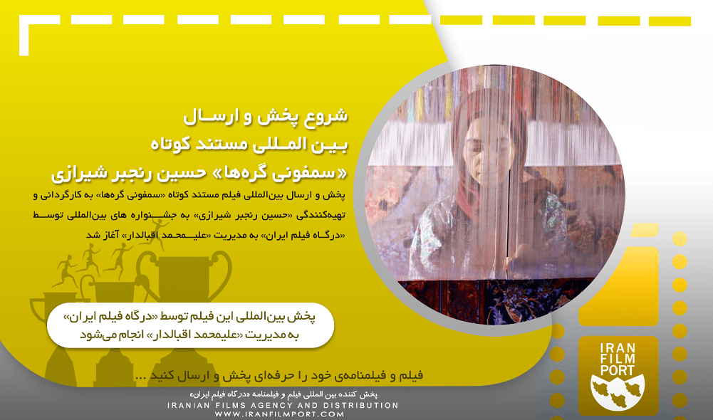 به گزارش «درگاه فیلم ایران» پخش و ارسال بینالمللی فیلم کوتاه مستند «سمفونی گرهها» به کارگردانی و تهیهکنندگی «حسین رنجبر شیرازی» به جشــــنوارههای بینالمللی توسط «درگاه فیلم ایران» به مدیریت «علیمحمد اقبالدار» آغاز شد.