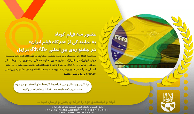 IRAN FILM PORT, an Iranian films agency and distribution be announced formally and proudly that "P.O.V" directed by MOHAMMAD ALI MOKRI ,"GAME WITHOUT ZERO" directed by MOSTAFA ROSTAMPOUR, produced by ATEFEH REZAYAN and "OLD S MAN HEAVY SLEEP" directed by MOSTAFA ROSTAM POUR, produced by IRANIAN YOUTH CINEMA SOCIETY short films are the official selected in Festival RNAB in Brazil 2022. These films are distributing with IRAN FILM PORT company under the supervision of ALIMOHAMMAD EGHBALDAR.