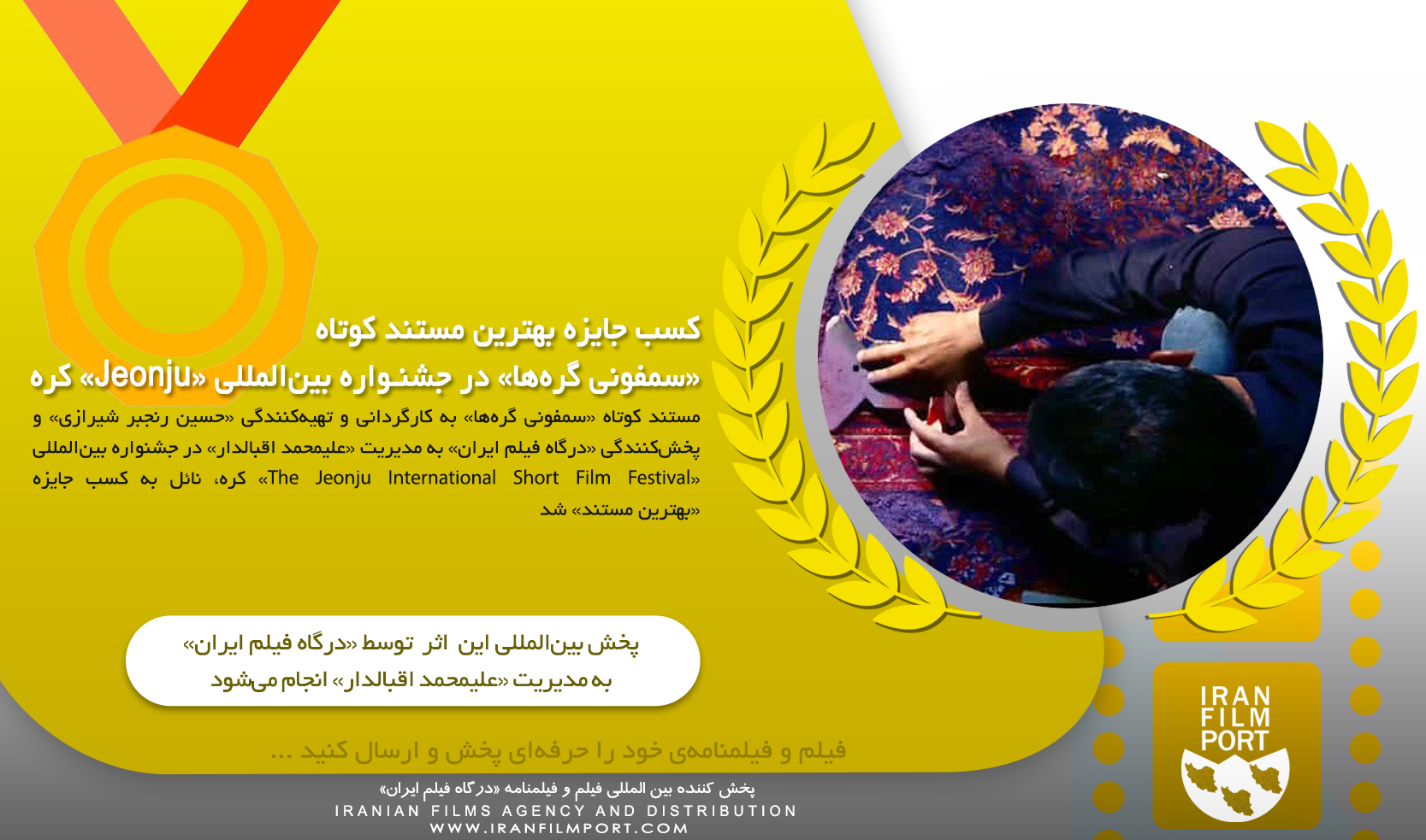IRAN FILM PORT (An Iranian Films Agency and Distribution) announces formally and proudly that the short documentary named "SYMPHONY OF THE KNOTS" directed and produced by "Hossein Ranjbar Shirazi", the short film has won of «cash prize» at "The Jeonju International Short Film Festival" of Korea 2022. This short documentary is being distributed by "IRAN FILM PORT" company, under the supervision of "ALIMOHAMMAD EGHBALDAR".