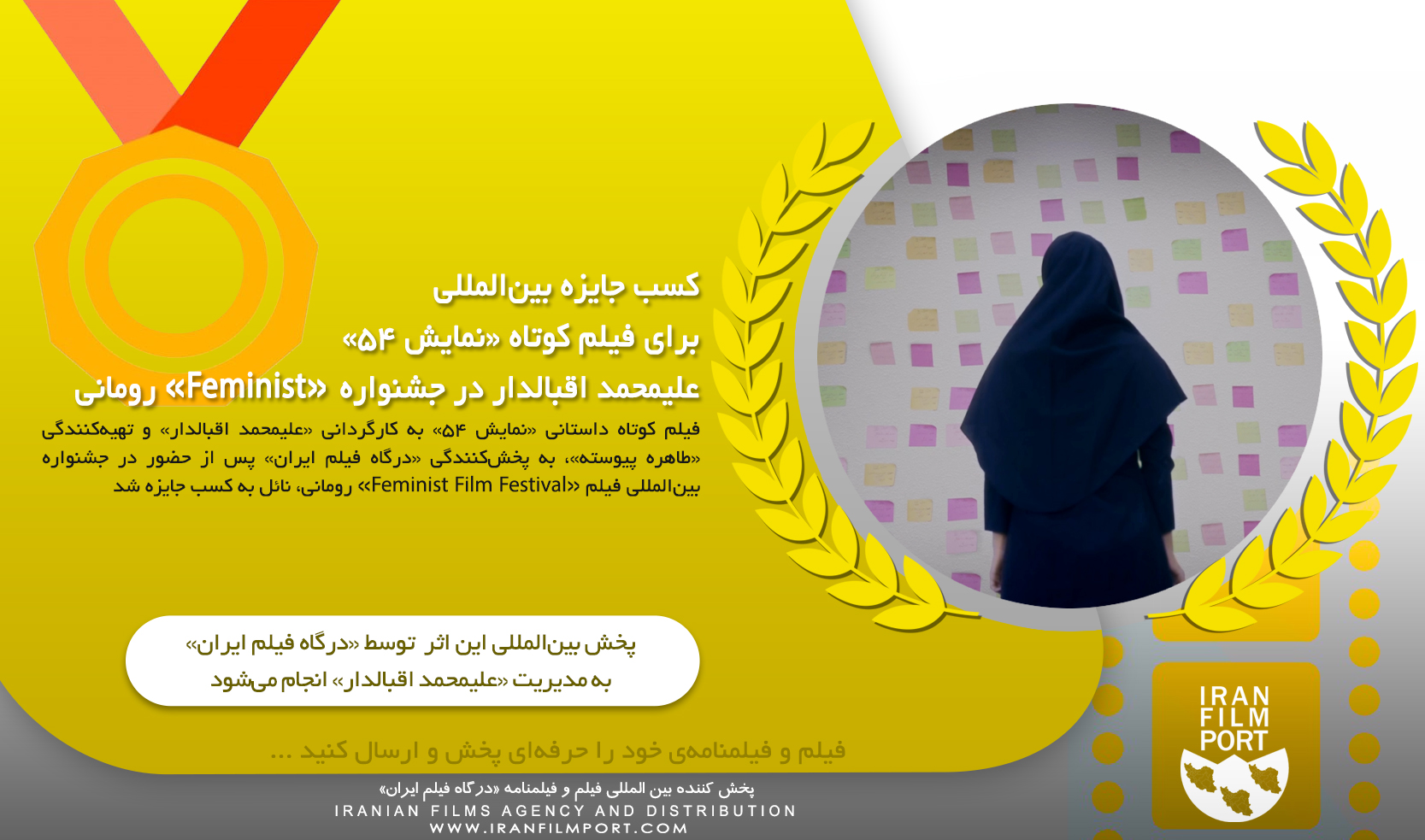 IRAN FILM PORT (An Iranian Films Agency and Distribution) announces formally and proudly that the short film named "Performance 54" directed by "Alimohammad Eghbaldar" and produced by "Tahere Peyvaste" has been won as a BEST SHORT FOREIGN FILM for "the Feminist Film Festival" in Romania 2022. This short film is being distributed by "IRAN FILM PORT" company, under the supervision of "ALIMOHAMMAD EGHBALDAR".