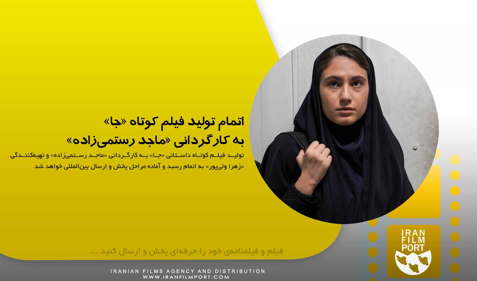 به گزارش «درگاه فیلم ایران» تولید فیلم کوتاه داستانی «جا» به کارگردانی «ماجد رستمیزاده»، تهیهکنندگی «زهرا ولیپور» و به نویسندگی «علی رستمی» به اتمام رسید و آماده پخش و ارسال بینالمللی خواهد شد.