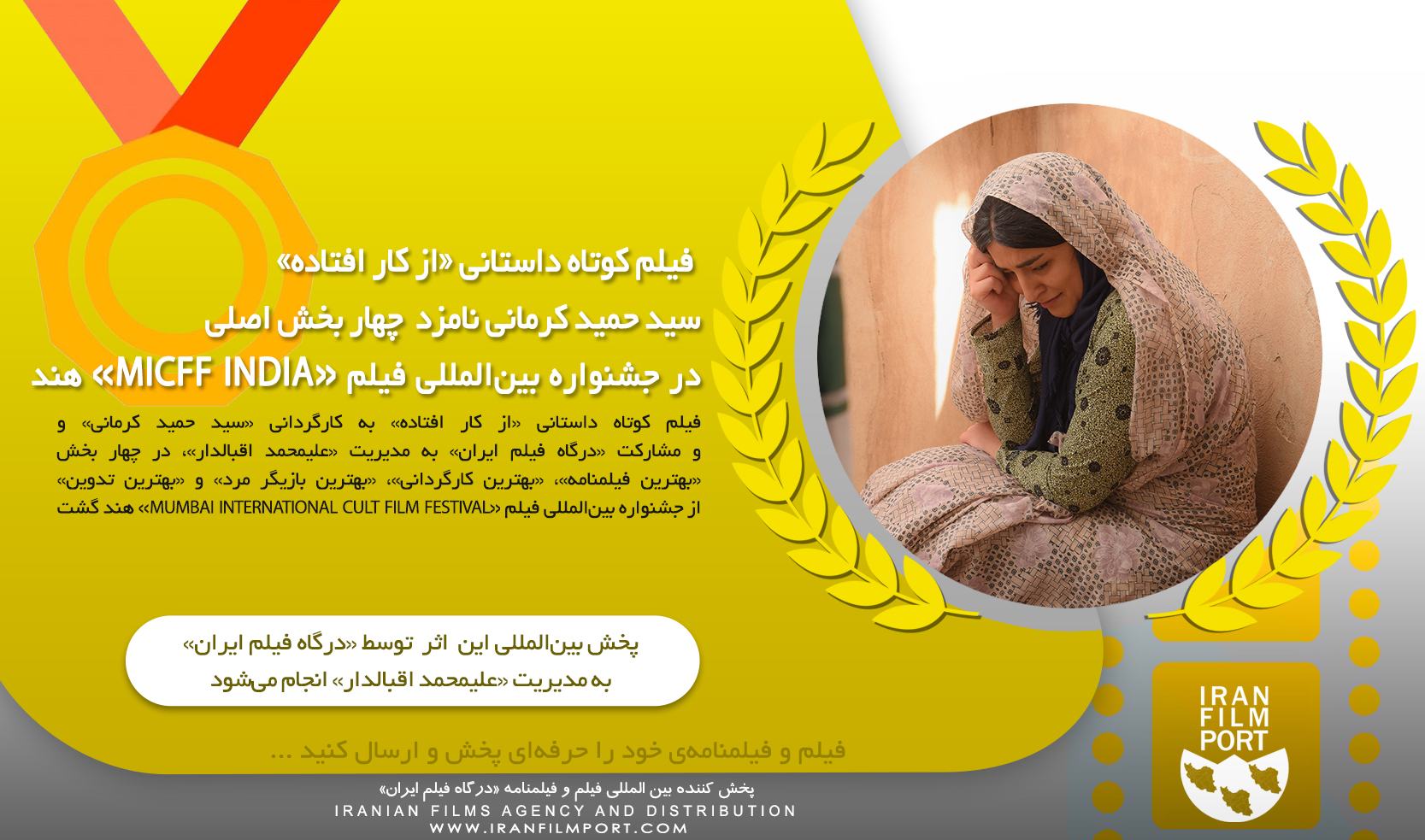 IRAN FILM PORT (An Iranian Films Agency and Distribution) announces formally and proudly that the «short film» named "The Disabled" directed by "Seyed Hamid Kermani", has been nominated in four sections "Best Screenplay" for "Seyed Hamid Kermani", "Best Director", "Best Editing" for "Khalil Mohammadi" and "Best Actor" for "Mohammadvali Foroutan" at the "MUMBAI INTERNATIONAL CULT FILM FESTIVAL" in India 2023. This short film is being distributed by "IRAN FILM PORT" company, under the supervision of "ALIMOHAMMAD EGHBALDAR".