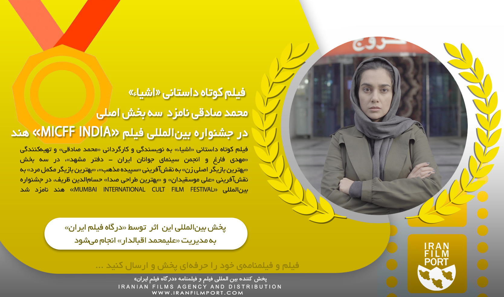 IRAN FILM PORT (An Iranian Films Agency and Distribution) announces formally and proudly that the short film named "Things" directed by "Mohammad Sadeghi" and produced by "Mehdi Faregh" & "IYCS" has been nominated in three sections "Best Actress in Lead Role" for "Sepide Mazhab", "Best Actor in Supporting Role" for "Ali Moseghidan" and "Best Sound Designer" for "Hesamodin Zarif" at "MUMBAI INTERNATIONAL CULT FILM FESTIVAL" in India 2023. This short film is being distributed by "IRAN FILM PORT" company, under the supervision of "ALIMOHAMMAD EGHBALDAR".