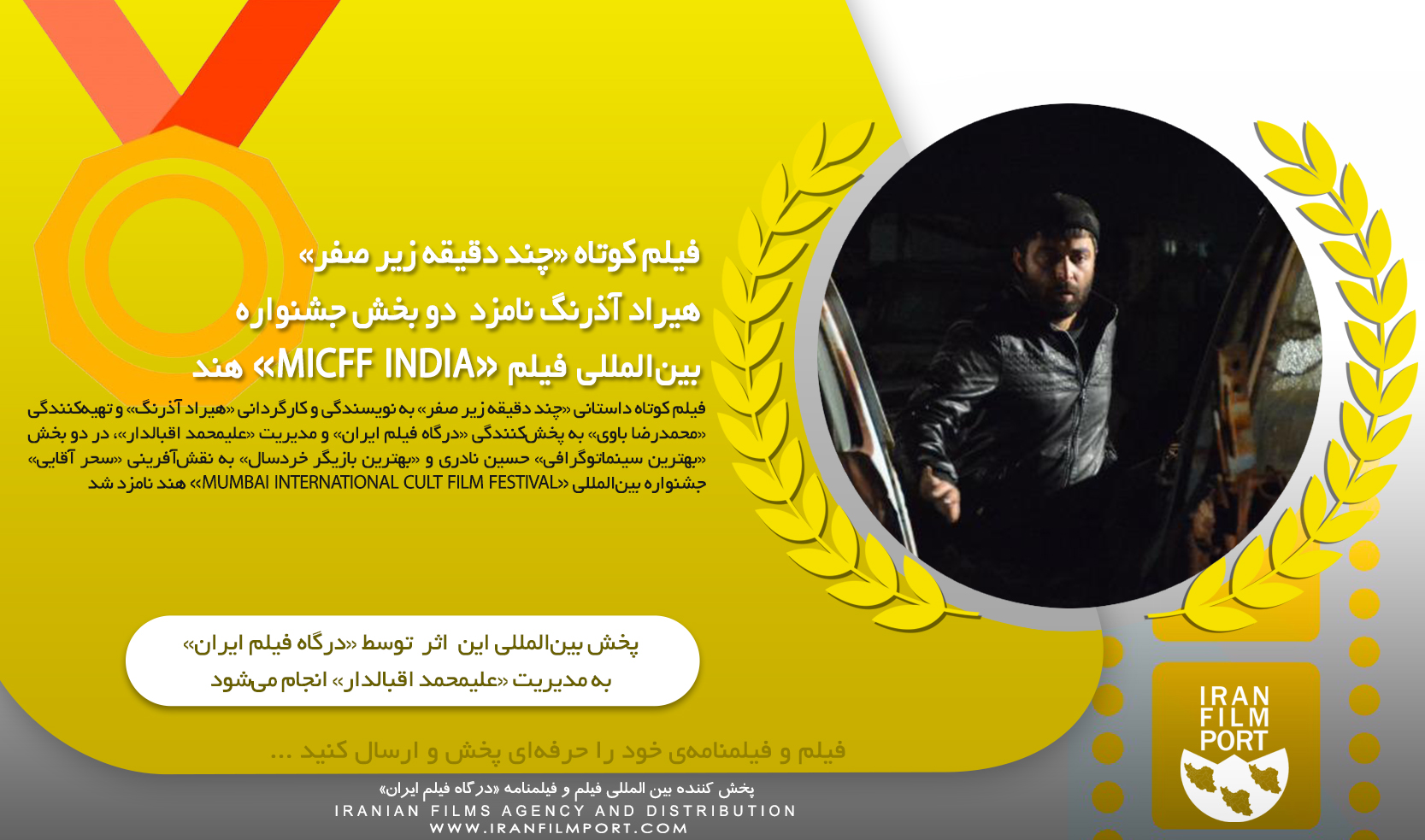 به گزارش «درگاه فیلم ایران» فیلم کوتاه داستانی «چند دقیقه زیر صفر» به نویسندگی و کارگردانی «هیراد آذرنگ» و تهیه‌کنندگی «محمدرضا باوی» و پخش‌کنندگی «درگاه فیلم ایران» به مدیریت «علیمحمد اقبالدار»، در دو بخش «بهترین سینماتوگرافی» حسین نادری و «بهترین بازیگر خردسال» به نقش‌آفرینی «سحر آقایی» در جشنواره بین‌المللی «MUMBAI INTERNATIONAL CULT FILM FESTIVAL» هند نامزد شد.