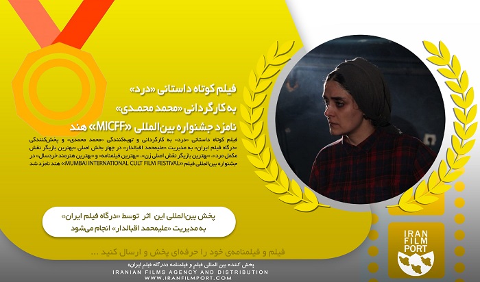 IRAN FILM PORT (An Iranian Films Agency and Distribution) announces formally and proudly that the short film named "The Pain" short film, directed & produced by "Mohammad Mohammadi" has been nominated in Four sections of "Best Actor in a Supporting Role" for "Mohammad Mousavi", "Best Actress in a Lead Role" for "Maryam Mousavi", "Best Child Artist" for "Diana Mohammadi" and "Best Original Screenplay" for "Mohammad Mohammadi" at "MUMBAI INTERNATIONAL CULT FILM FESTIVAL" in India 2023. This short film is being distributed by "IRAN FILM PORT" company, under the supervision of "ALIMOHAMMAD EGHBALDAR".