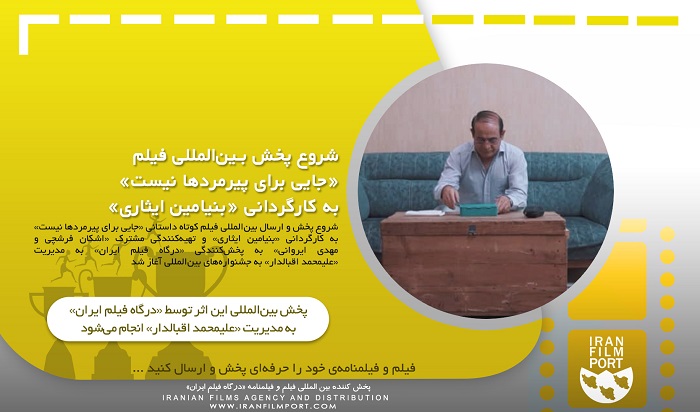 به گزارش «درگاه فیلم ایران» فیلم کوتاه داستانی «جایی برای پیرمردها نیست» به کارگردانی «بنیامین ایثاری» و تهیهکنندگی «اشکان فرشچی و مهدی ایروانی» پخشکنندگی «درگاه فیلم ایران» به مدیریت «علیمحمد اقبالدار» به جشنوارههای بینالمللی آغاز شد.