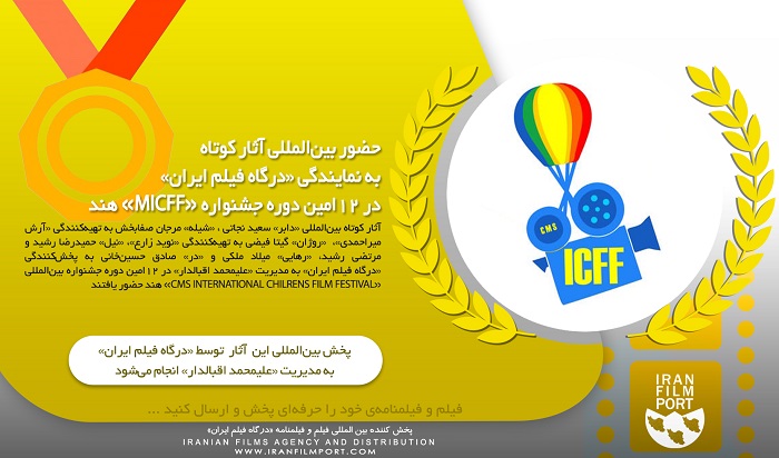 به گزارش «درگاه فیلم ایران» آثار کوتاه بینالمللی «دابر» سعید نجاتی به تهیهکنندگی «مهدیه غلامحسینی و امیر الوندی»، «شیله» مرجان صفابخش به تهیهکنندگی «آرش میراحمدی»، «روژان» گیتا فیضی به تهیهکنندگی «نوید زارع»، «نیل» حمیدرضا رشید و مرتضی رشید، «رهایی» میلاد ملکی و «دُر» صادق حسینخانی به پخشکنندگی «درگاه فیلم ایران» به مدیریت «علیمحمد اقبالدار» در 12امین دوره جشنواره بینالمللی «CMS INTERNATIONAL CHILRENS FILM FESTIVAL» هند حضور یافتند.