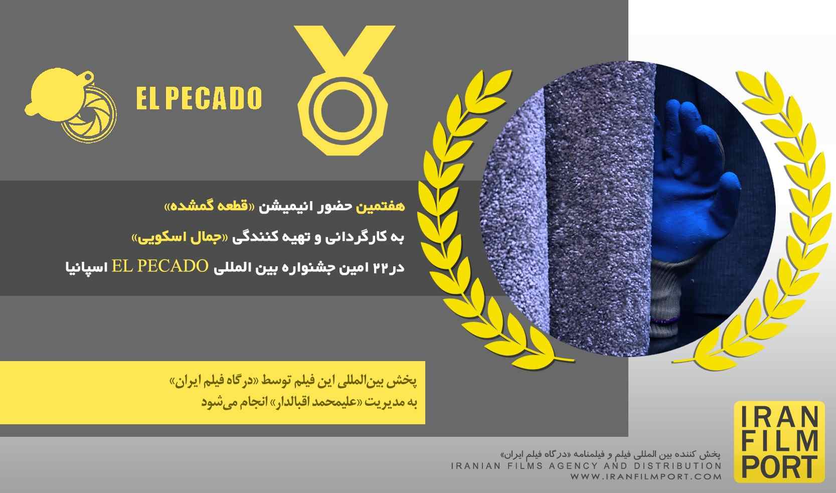 به گزارش «درگاه فیلم ایران» انیمیشن کوتاه «قطعه گمشده» به کارگردانی و تهیه‌کنندگی «جمال اسکویی» و پخش‌کنندگی «درگاه فیلم ایران» به مدیریت «علیمحمد اقبالدار» در 22امین جشنواره بین‌المللی «EL PECADO» اسپانیا حضور یافت.