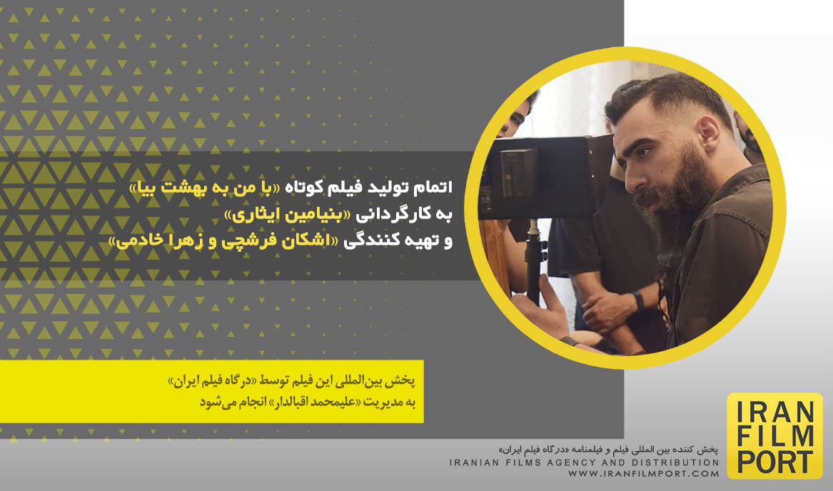 به گزارش «درگاه فیلم ایران» تولید فیلم کوتاه داستانی «با من به بهشت بیا» به کارگردانی «بنیامین ایثاری» و تهیهکنندگی مشترک «اشکان فرشچی و زهرا خادمی» به اتمام رسید و آماده پخش و ارسال بینالمللی خواهد شد. لازم به ذکر است که پیش از این چهار اثر کوتاه «پای راست من»، «توشات»، «گوی سیاه» و «جایی برای پیرمردها نیست» نیز از ساخته ی همین کارگردان توسط «درگاه فیلم ایران» پخش جهانی شده است. گفتنی است که، «بنیامین ایثاری» نماینده رسمی «درگاه فیلم ایران» در استان کرمانشاه می باشد.