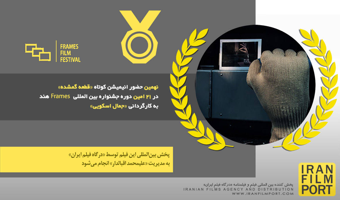 به گزارش «درگاه فیلم ایران» انیمیشن کوتاه «قطعه گمشده» به کارگردانی و تهیهکنندگی «جمال اسکویی» و پخشکنندگی «درگاه فیلم ایران» به مدیریت «علیمحمد اقبالدار»، نهمین حضور خود را در 21 امین دوره جشنواره بینالمللی «Frames Film Festival» هند تجربه کرده است.