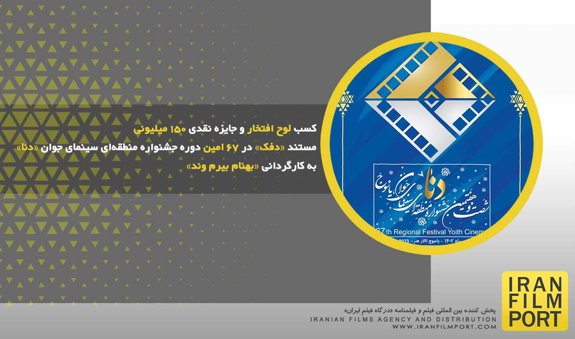 IRAN FILM PORT (An Iranian Films Agency and Distribution) announces formally and proudly that the documentary film named "DAFAK", directed by "Behnam Beyromvand" has been awarded at "67th Regional Festival Youth Cinema" in Iran 2023. This documentary is being distributed by "IRAN FILM PORT" company, under the supervision of "ALIMOHAMMAD EGHBALDAR".