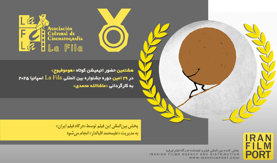 IRAN FILM PORT (An Iranian Films Agency and Distribution) announces formally and proudly that the short animation named "Homo Fuge", directed and produced by "Mashaallah Mohammadi" has been officially selected at "29th La Fila Short Film Festival" in Spain 2025. This animation is being distributed by "IRAN FILM PORT" company, under the supervision of "ALIMOHAMMAD EGHBALDAR".