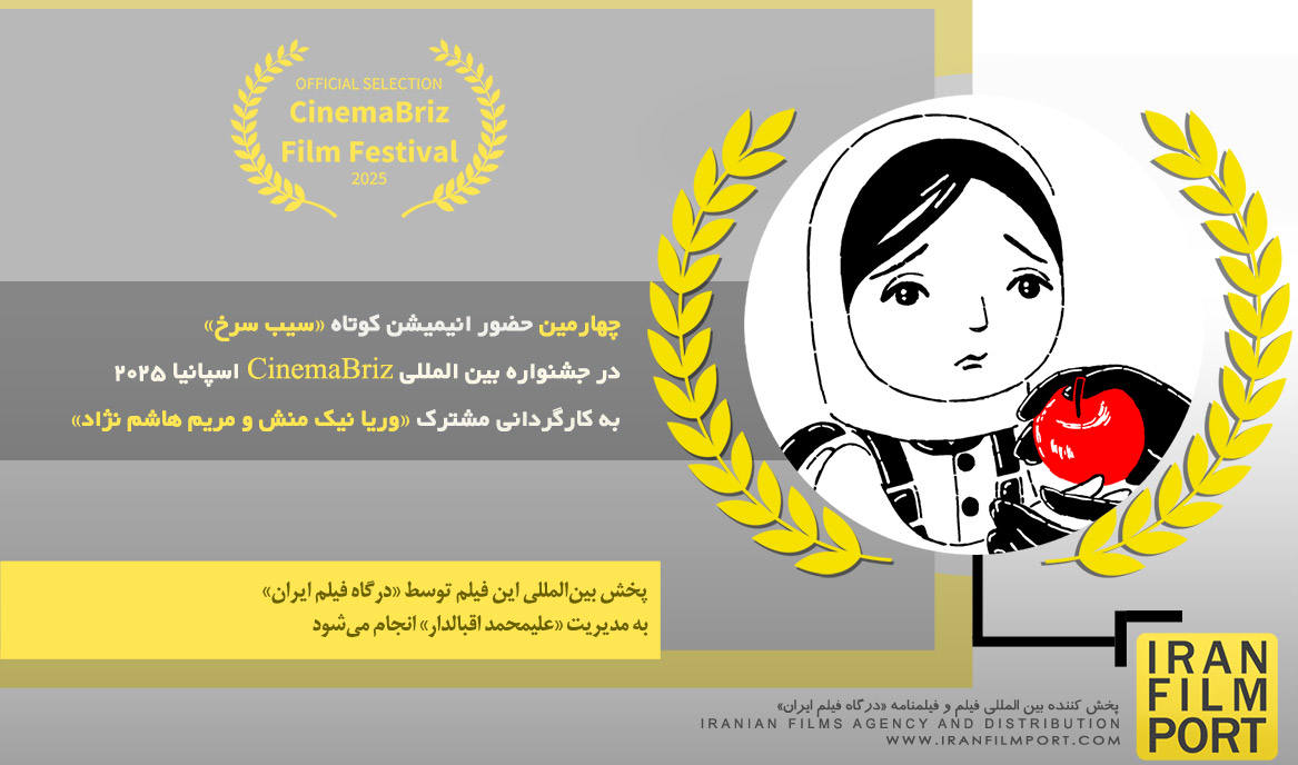 IRAN FILM PORT (An Iranian Films Agency and Distribution) announces formally and proudly that the animation named "Red Apple", co-directed by "Worya Nick Manesh" and "Maryam Hashem Nezhad" and produced by "Worya Nick Manesh" has been officially selected at "CinemaBriz Film Festival" in Spain 2025. This film is being distributed by "IRAN FILM PORT" company, under the supervision of "ALIMOHAMMAD EGHBALDAR".