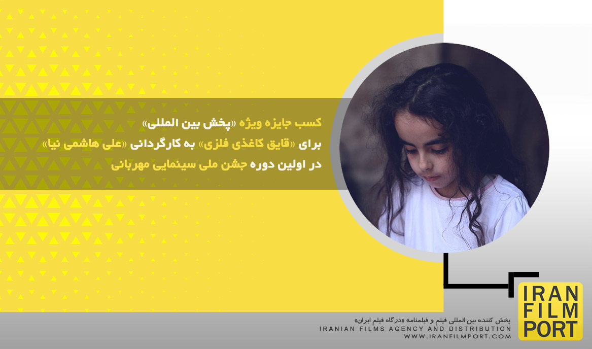 به گزارش «درگاه فیلم ایران» فیلم کوتاه داستانی «قایق کاغذی فلزی» به کارگردانی و تهیه کنندگی «علی هاشمی نیا» پس از حضور در اولین دوره جشن ملی سینمایی مهربانی (به یاد آرش میراحمدی) توانست نائل به کسب جایزه ویژه «پخش بین المللی» این دوره از جشنواره شود. گفتنی است که، پخش بین المللی این اثر توسط «درگاه فیلم ایران» به مدیریت «علیمحمد اقبالدار» می باشد.