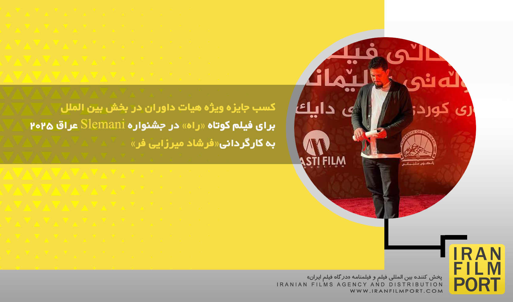 به گزارش «درگاه فیلم ایران» فیلم کوتاه داستانی «راه» به کارگردانی و تهیه کنندگی «فرشاد میرزایی فر» و پخشکنندگی «درگاه فیلم ایران» به مدیریت «علیمحمد اقبالدار»، پس از حضور خود در جشنواره بین المللی «Slemani International Film Festival» عراق توانست نائل به کسب جایزه ویژه هیات داوران در بخش بین الملل این جشنواره شود.