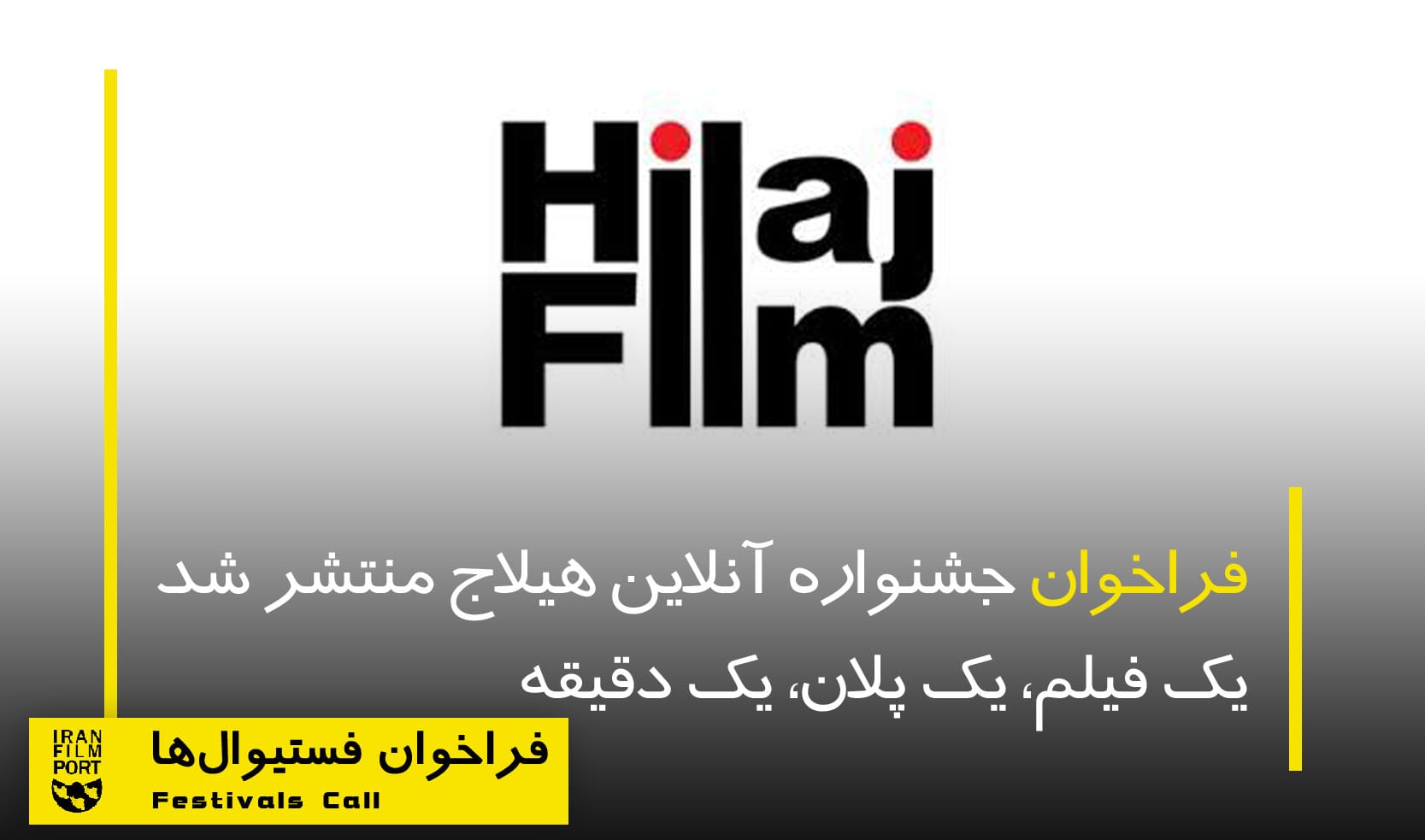 به گزارش «درگاه فیلم ایران» فراخوان جشنواره آنلاین هیلاج، (یک فیلم، یک پلان، یک دقیقه) منتشر شد.
